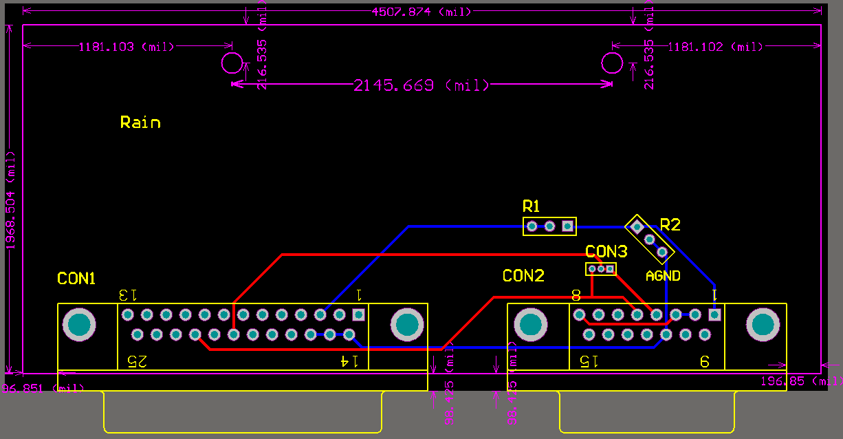 但是光是分壓電路,還是不夠的,因?yàn)榭刂瓶ń涌诤托码娫唇涌谶€不一致,需要制作個(gè)像樣的,可靠的轉(zhuǎn)接器,才能交付客戶。我們專門畫了版圖,到電子市場找了合適的盒子,制版,焊接,調(diào)試。終于,如下圖: