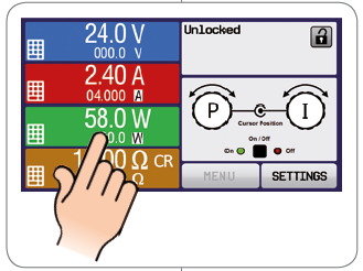 所有型號(hào)都支持四種調(diào)節(jié)模式:恒壓(CV),恒流(CC),恒功率(CP)與恒阻CR)。其控制電路核心是一個(gè)快速微處理器,具有這些功能:帶通用函數(shù)的真實(shí)函數(shù)發(fā)生器,如:矩形、三角形或階躍形。彩色顯示器與鍵盤(pán),以及連個(gè)旋鈕,使用戶(hù)手操更靈活。